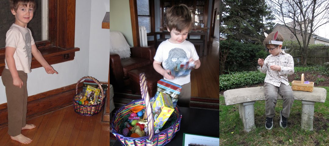 The Easter Bunny stopped by Dad's last weekend and left me a basket of goodies, but not before he drank some milk from my Easter cup and ate some of the eggs Gigi and I colored. The Bunny must be hanging with Santa because I got a couple toys as well. Those kept me entertained before we headed to Gigi & Papa's to vist with the family. I found the most eggs during this year's Easter egg hunt and probably ate the most chocolate too.